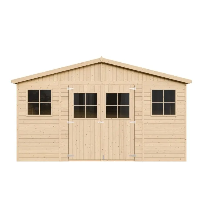 Der Gerätehaus Gartenhaus 297x401x246cm bietet eine perfekte Kombination aus Funktionalität, Langlebigkeit und Ästhetik. Mit robustem norwegischem Kiefernholz, einem wasserdichten Dach und viel Lichteinfall ist dieser Gerätehaus Gartenhaus ideal für die Aufbewahrung oder als Arbeitsraum. Bestellen Sie noch heute bei Intergard und profitieren Sie von hochwertigen Materialien sowie einem ausgezeichneten Preis-Leistungs-Verhältnis.